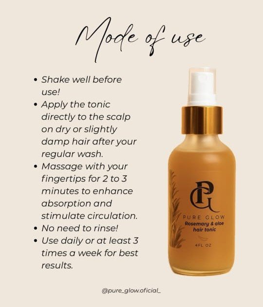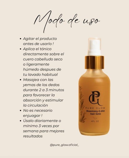 Ingredientes: Agua destilada, Romero fresco, Clavo de olor, Gel de aloe vera, vitamina E (100 % orgánico sin químicos ni agresivos)
